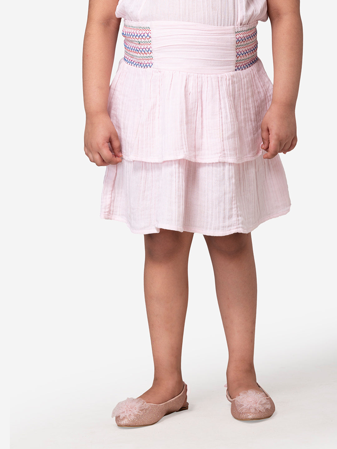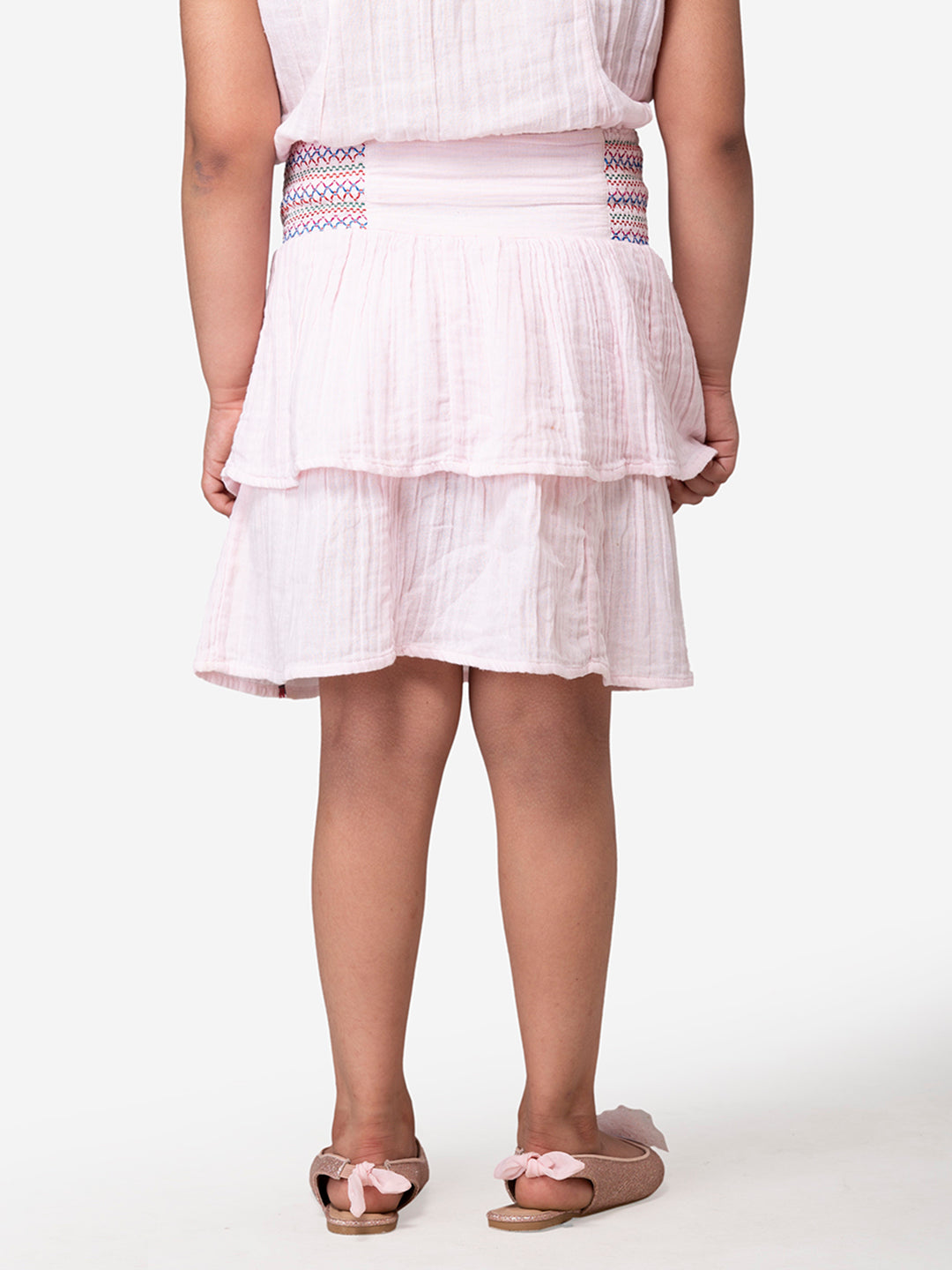 Hoop Hippo Cotton Gauze Pink WHite Girls Skirt