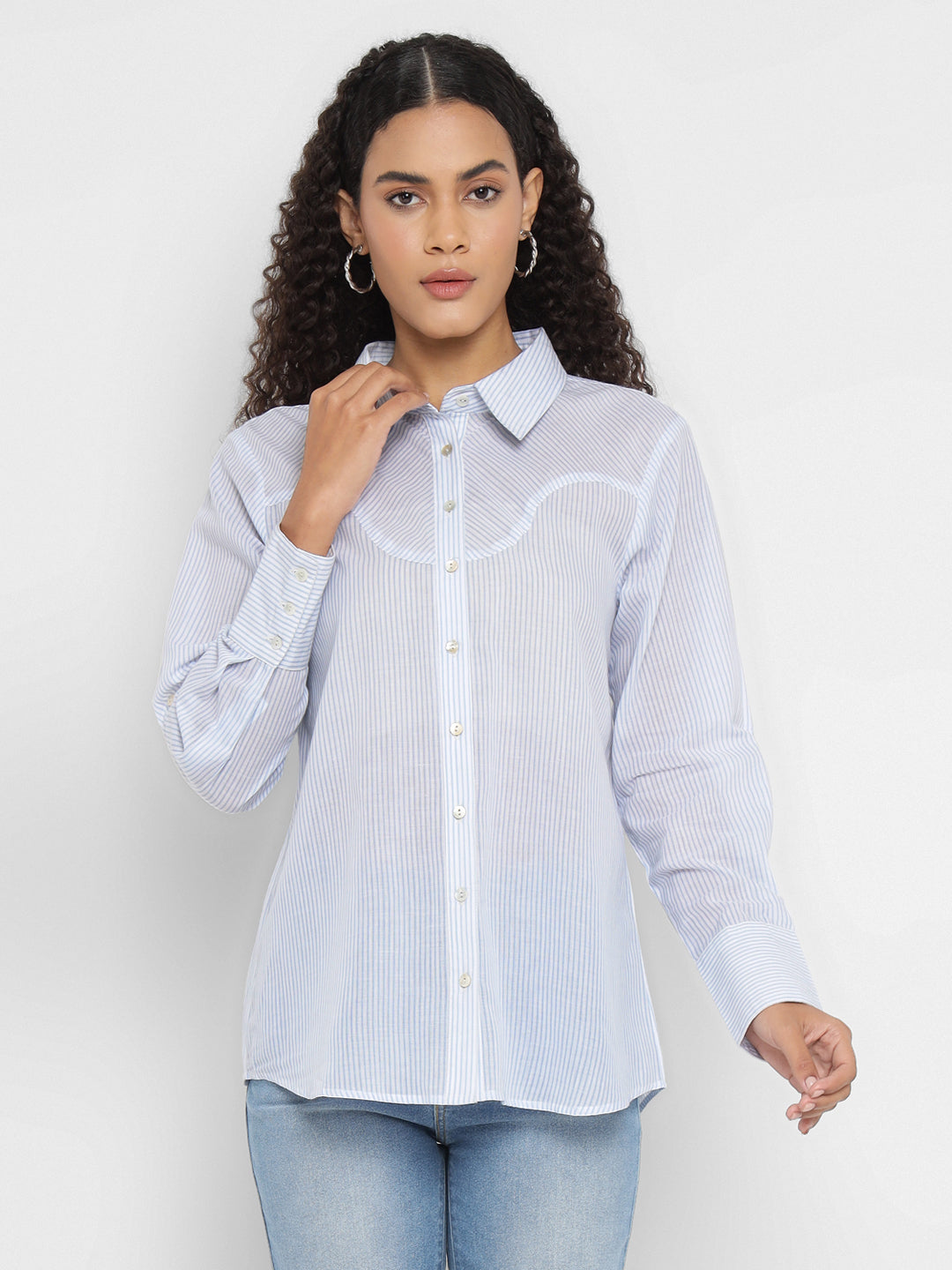 Porsorte Women’s Cotton Striped Full Sleeves, Button-Down Shirt