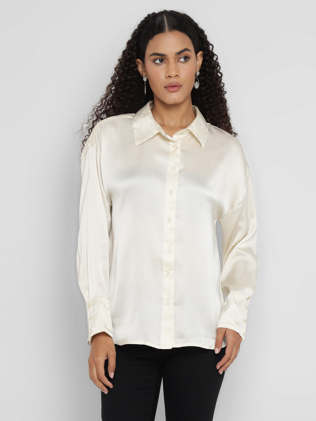 Porsorte Women’s Offwhite Satin Full Sleeves & Button-Down Collar Shirt
