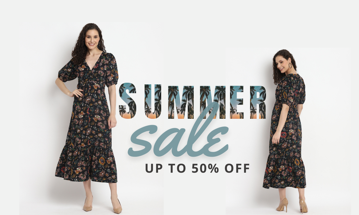 Porsorte Womens Floral Print Black Puff Sleeve Midi Dress