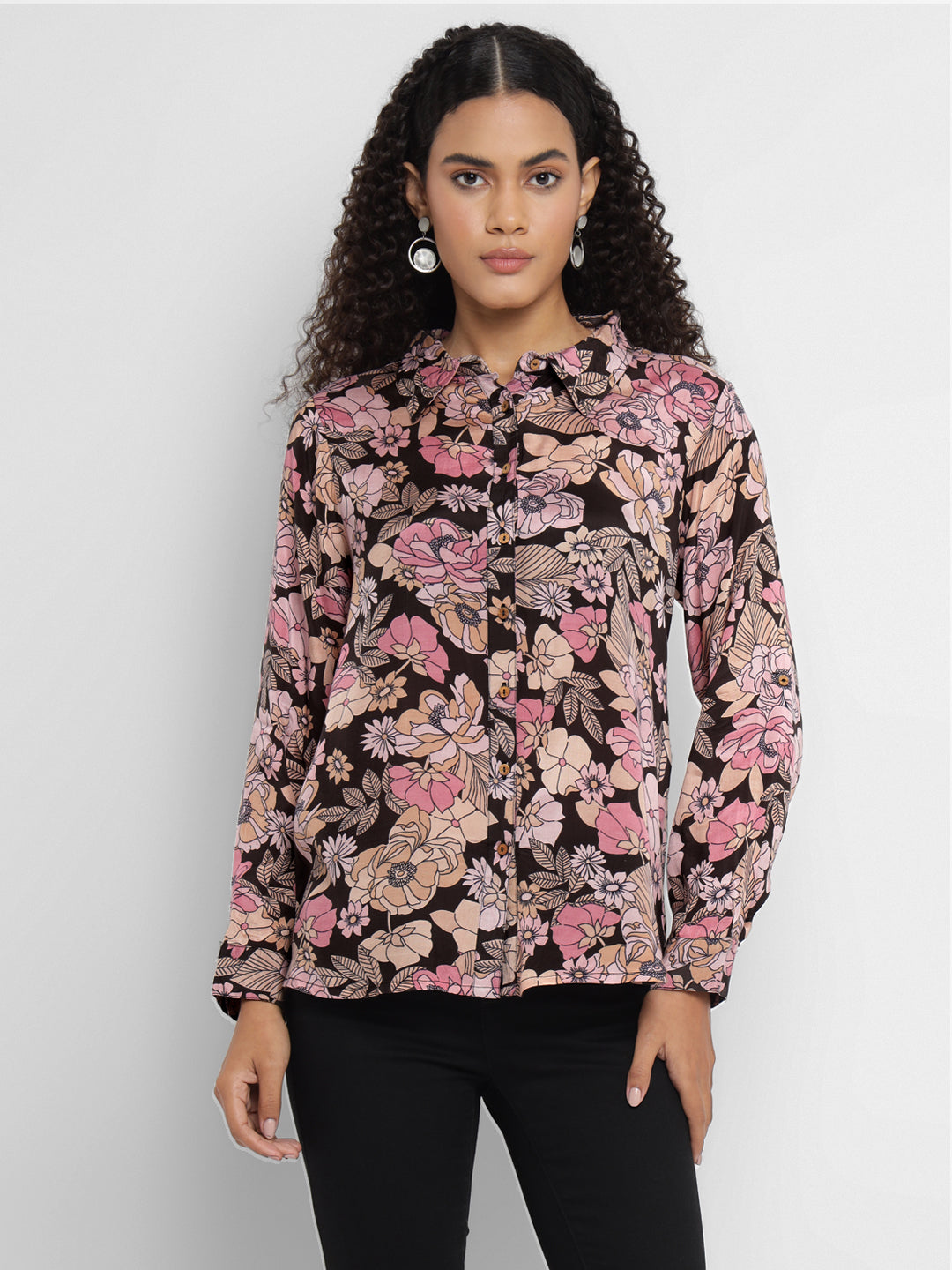 Porsorte Women’s Pink Floral Printed Shantoon Full Sleeves, Button-Down Shirt
