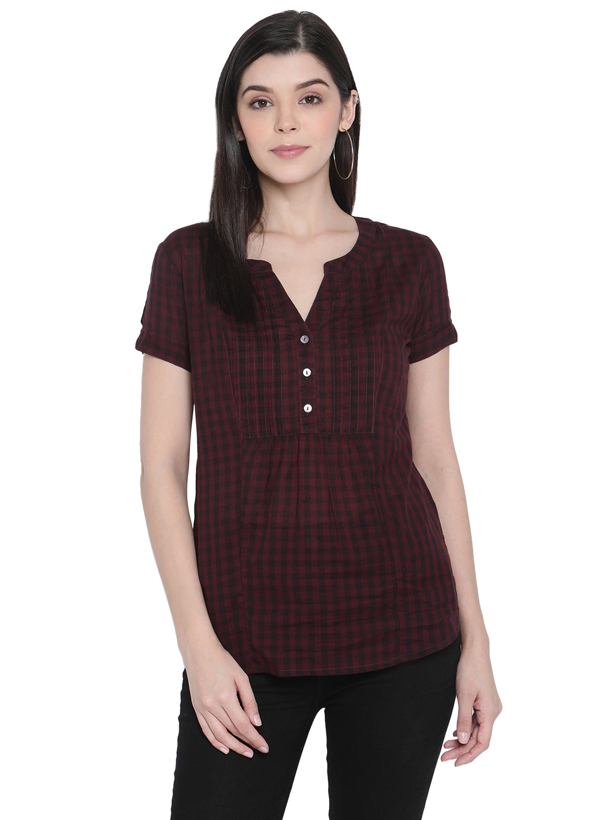 PORSORTE Women's 100% Cotton Dyed checks Wine Shirt