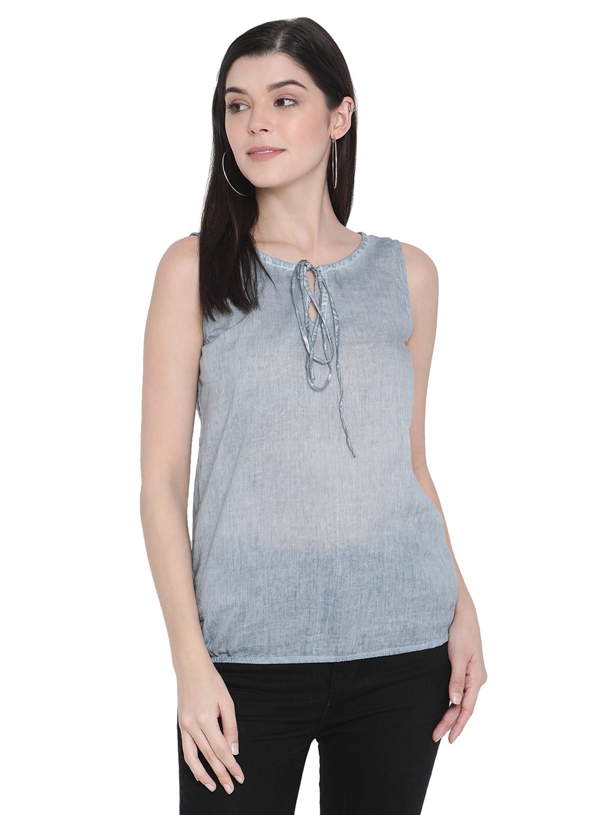 Porsorte Womens Denim Blue Cotton Voile Sleeveless Top
