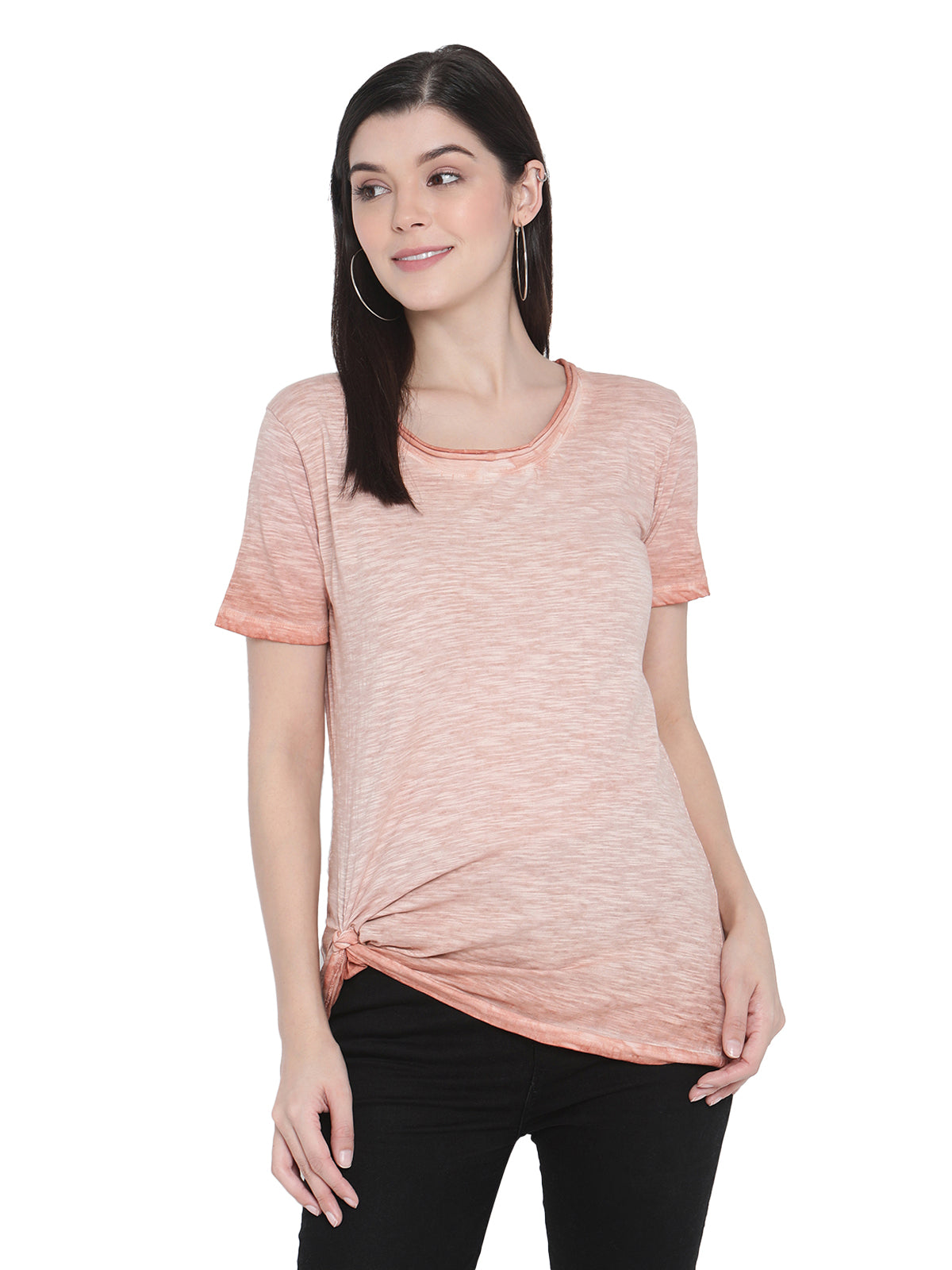 PORSORTE Women's Cotton Slub Pigment Dyed Brown Top
