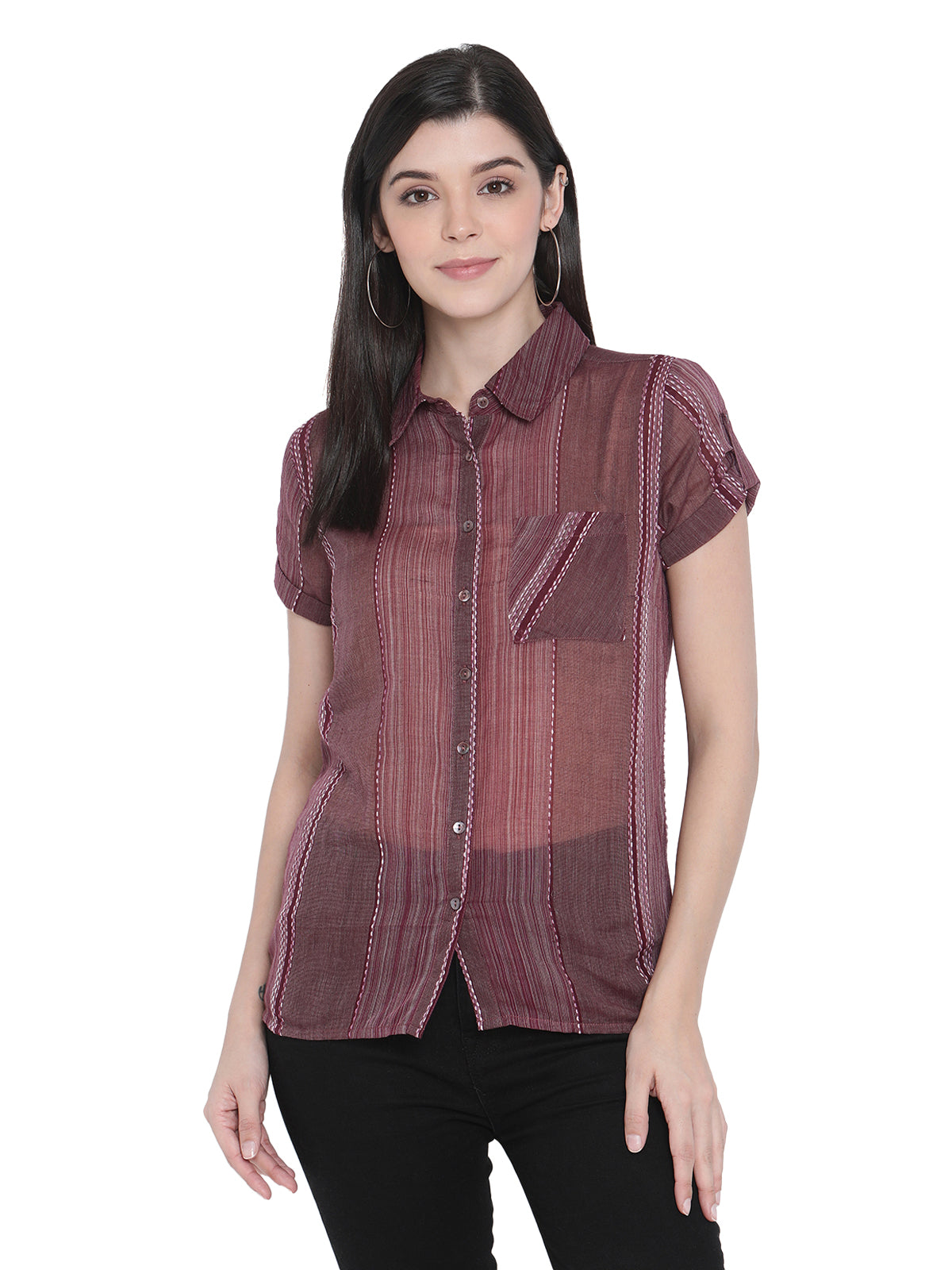 PORSORTE Women's 100% Cotton Striped Wine Shirt