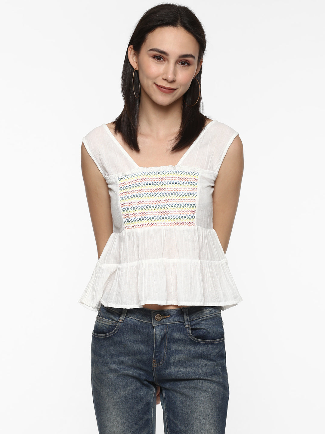Porsorte Womens Cotton Viscose Stripes with Lace Embroidery tie-up Top