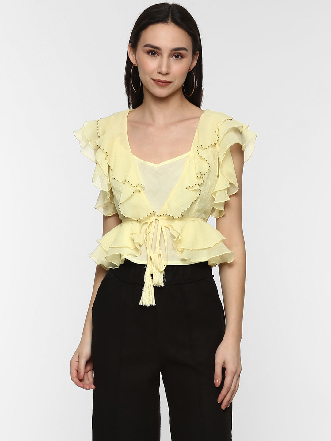 Porsorte Women Yellow Chiffon Shrug Top Without Lining