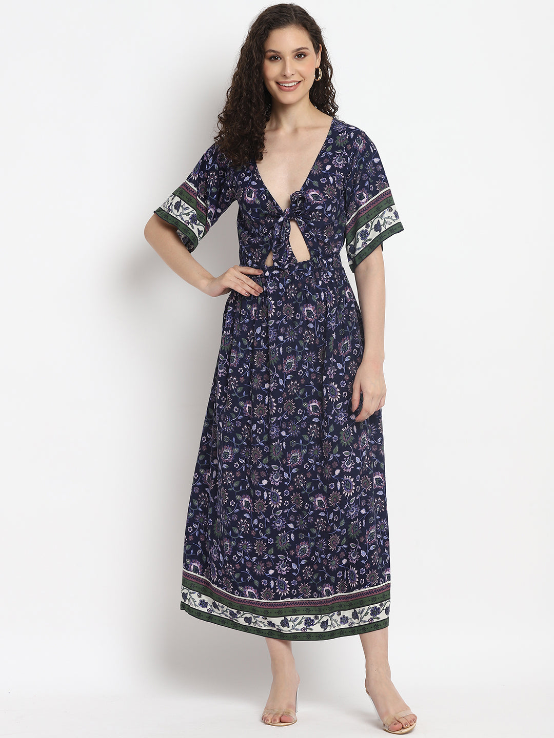 Porsorte Womens Partywear Cowl Neck Blue Midi Dress
