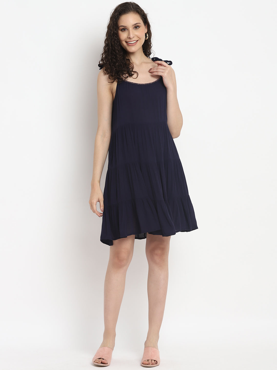 Porsorte Womens Navy Blue Sleeveless Casual Dress