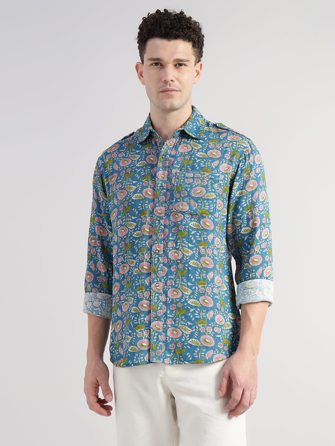 Porsorte Men's BluePrinted Full Sleeve Casual Cotton Shirt