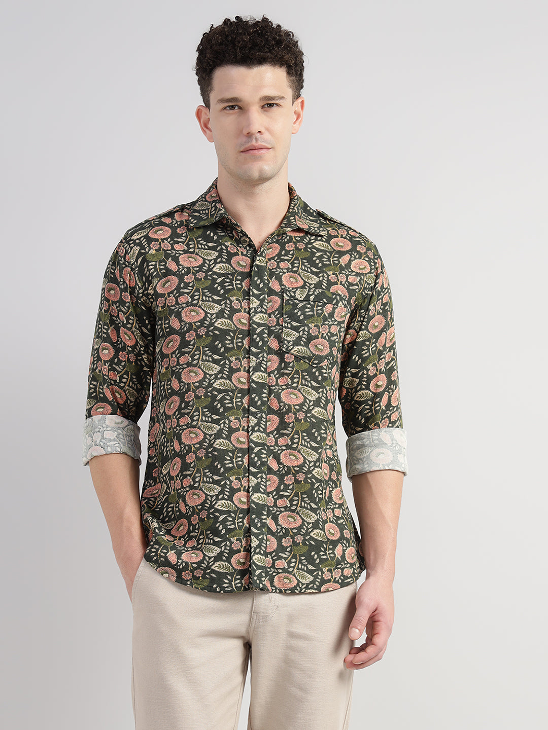 Porsorte Men's Green Printed Full Sleeve Casual Cotton Shirt