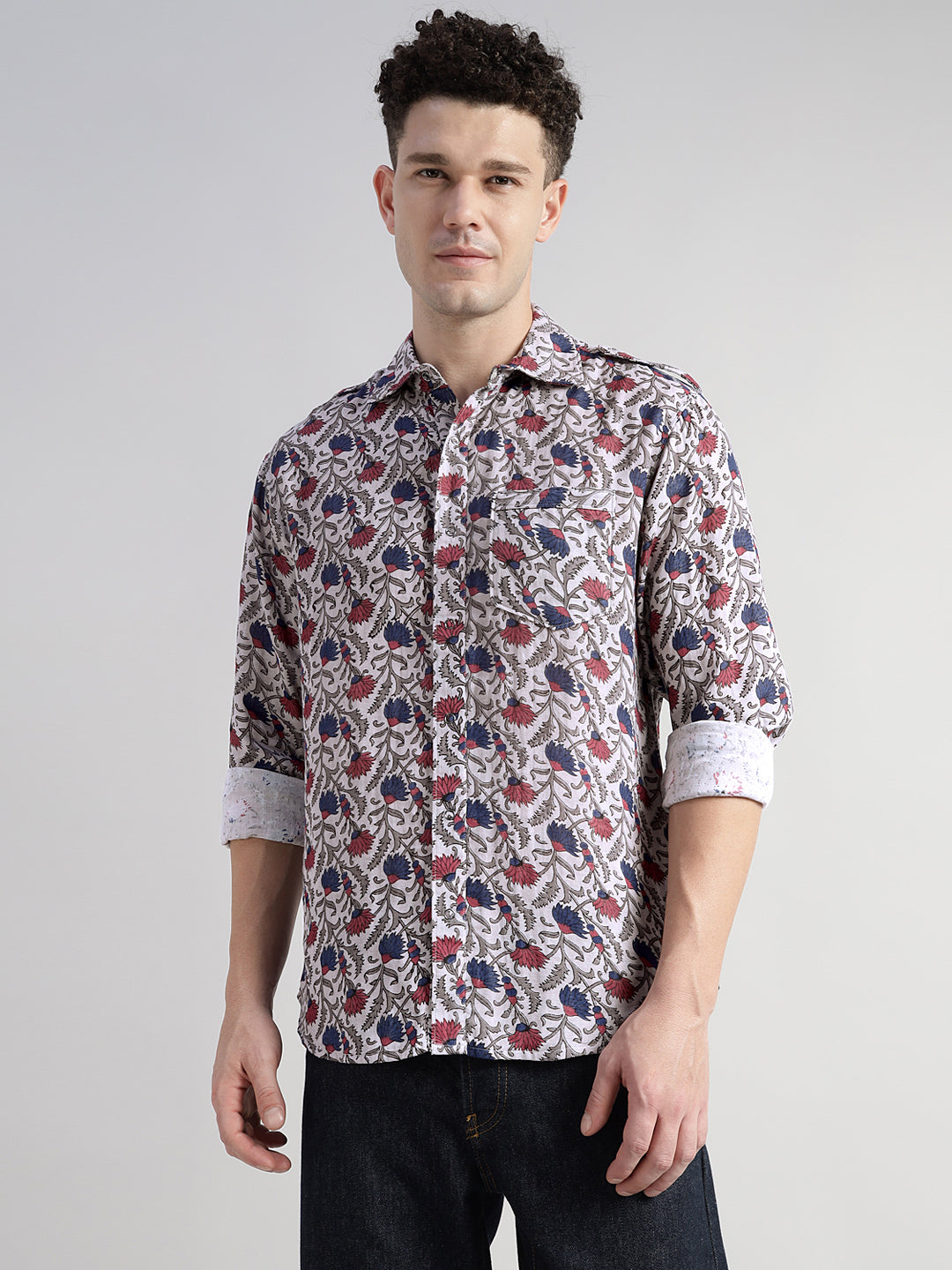 Porsorte Men's Printed Full Sleeve Casual Cotton Shirt