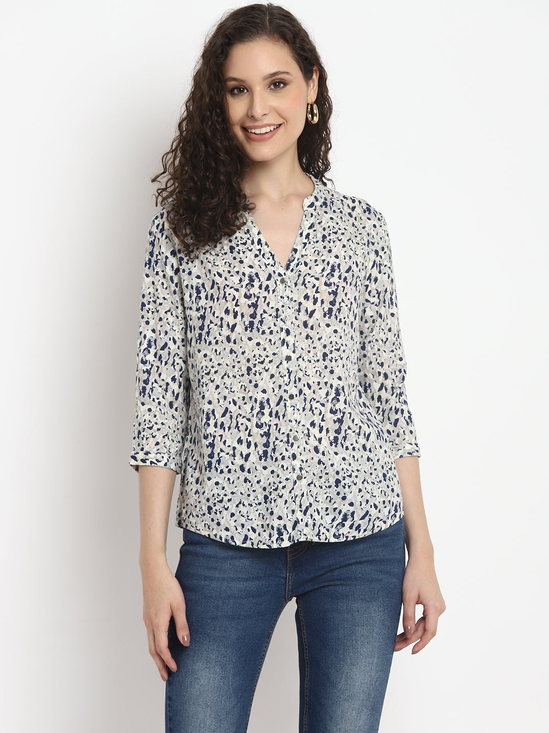 Porsorte Womens Multi Printed 3/4th Sleeve Button Down Shirt