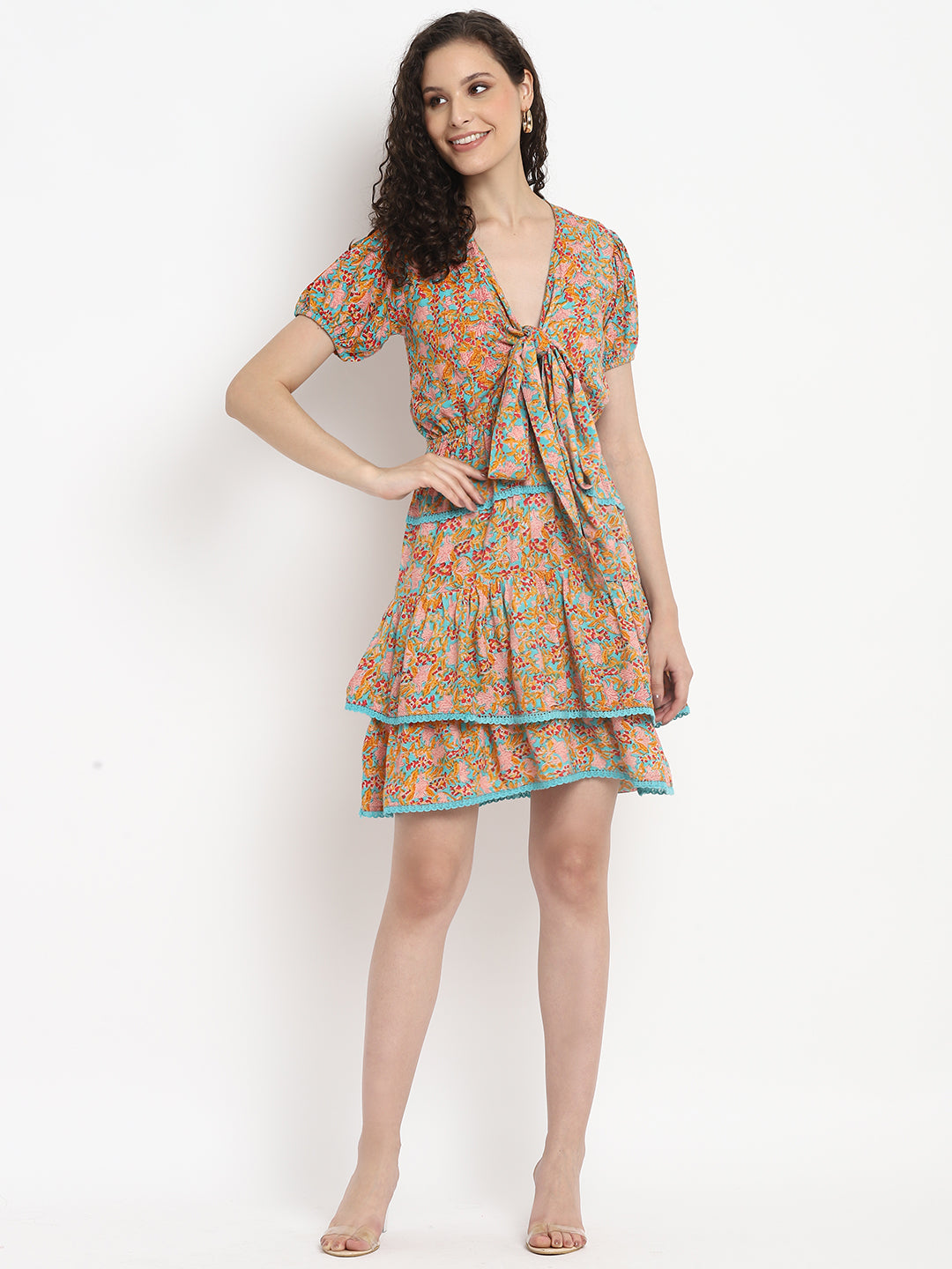Porsorte Womens Orange Ditsy Print Multi Layered Casual Dress