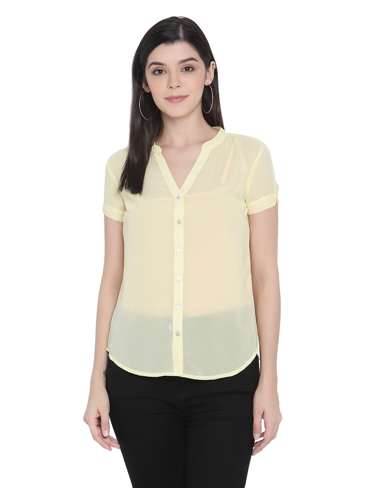 Porsorte Womens Yellow Georgette Short Sleeve Shirt Top