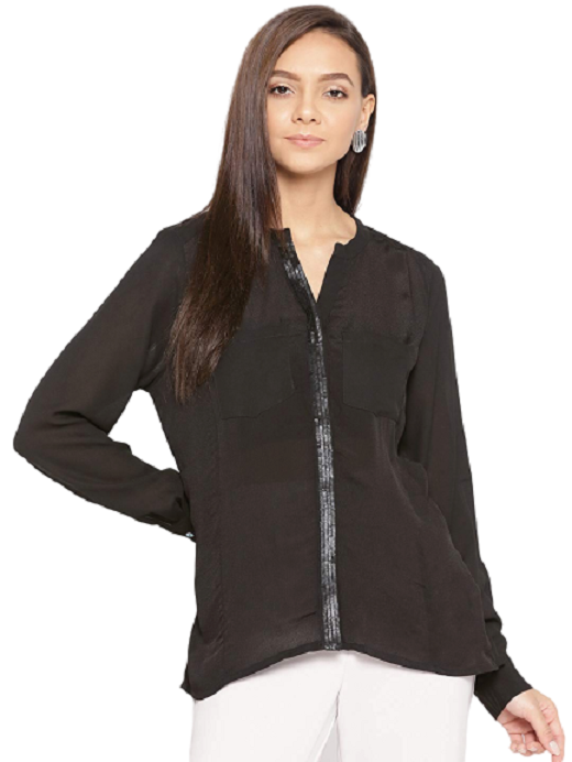 Women Black Solid Sequence Formal Shirt